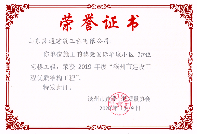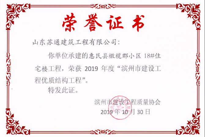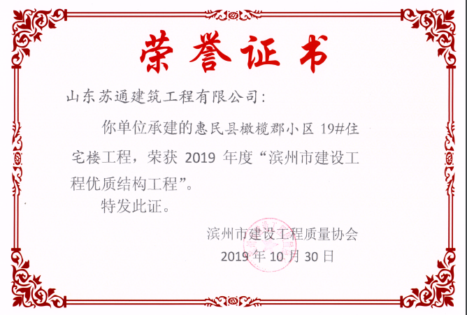 山東蘇通建筑工程有限公司,創(chuàng)建于2009年8月。目前擁有房屋建筑工程施工總承包壹級、市政公用工程施工總承包叁級、水利水電工程施工總承包叁級資質(zhì),同時還具有建筑裝修裝飾工程專業(yè)承包貳級、消防設(shè)施工程專業(yè)承包貳級、鋼結(jié)構(gòu)工程專業(yè)承包叁級、建筑機(jī)電安裝工程專業(yè)承包叁級等專業(yè)承包資質(zhì)。 公司總部坐落于山東省濱州市濱城區(qū)黃河十二路877號,現(xiàn)有辦公面積約2000平方米,機(jī)構(gòu)設(shè)黨支部工會辦公室、總經(jīng)理辦公室、綜合辦公室、工程管理部、經(jīng)營預(yù)算部、資產(chǎn)財務(wù)部、材料設(shè)備部、運行管理部、法律事務(wù)部等多個職能部門。公司管理體系已經(jīng)通過了GB/T 19001及GB/T 50430質(zhì)量管理體系、GB/T 24001環(huán)境管理體系(EMS)、GB/T 28001職業(yè)健康安全管理體系(OHSMS)等體系的認(rèn)證。 公司承建完工了濱州市建大教師之家、建大清怡苑、香格里拉水岸綠城住宅小區(qū)、雙泰建大城、曲阜崇德公館住宅小區(qū)、北海新區(qū)御景藍(lán)灣住宅小區(qū)、沾化德榮國際華城住宅小區(qū)、惠民橄欖郡住宅小區(qū)等工程項目,目前在建工程項目有:濱州市頤高國際電子商務(wù)產(chǎn)業(yè)園住宅小區(qū)項目、濱州市東盛國際項目、高新區(qū)建大中央華府住宅小區(qū)項目、濱州市融匯新里程住宅小區(qū)項目、濱州市建大秦皇壹號住宅小區(qū)項目、濱州市森林花...